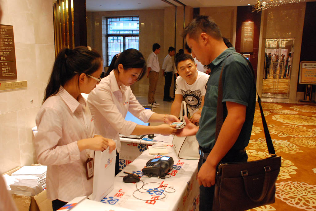 二維碼簽到區(qū),參會客戶簽到有序進(jìn)行中